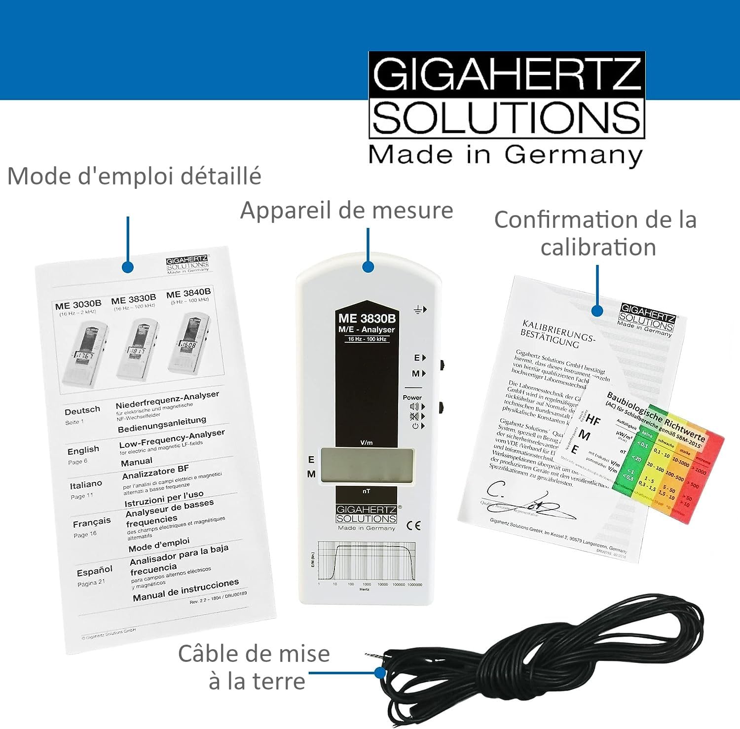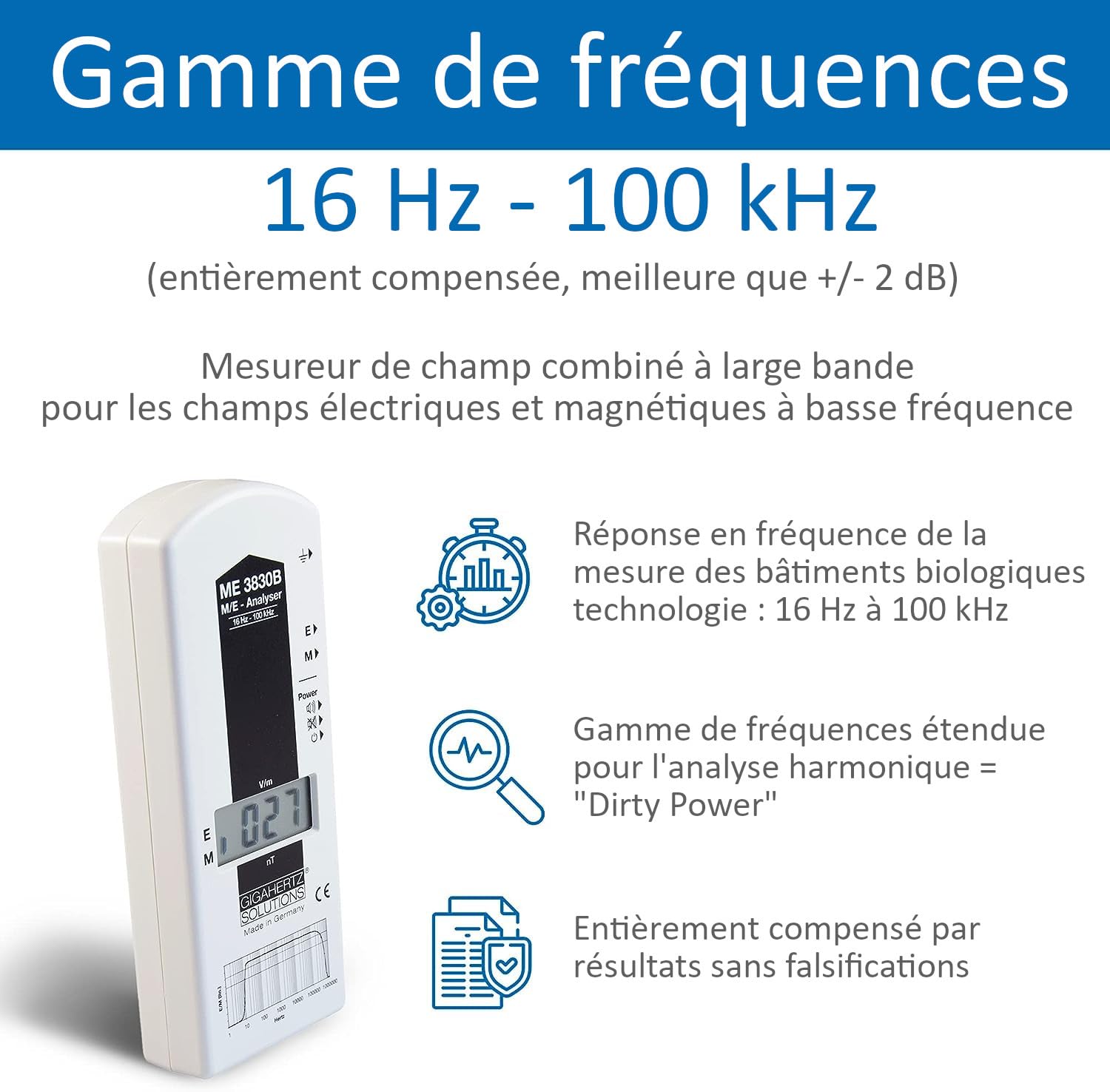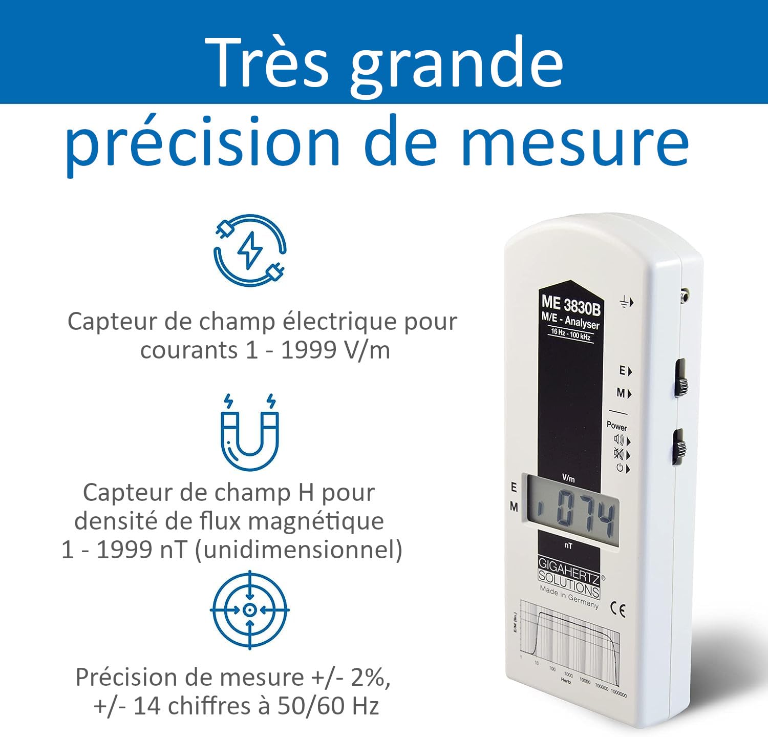 EMF Meter ME3830B | Basse fréquence | 16Hz-100kHz | Intensité de champ électrique & magnétique