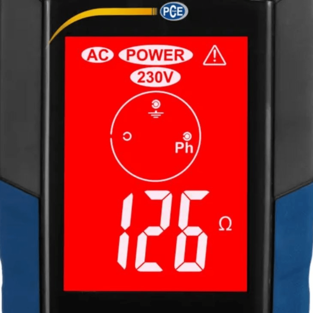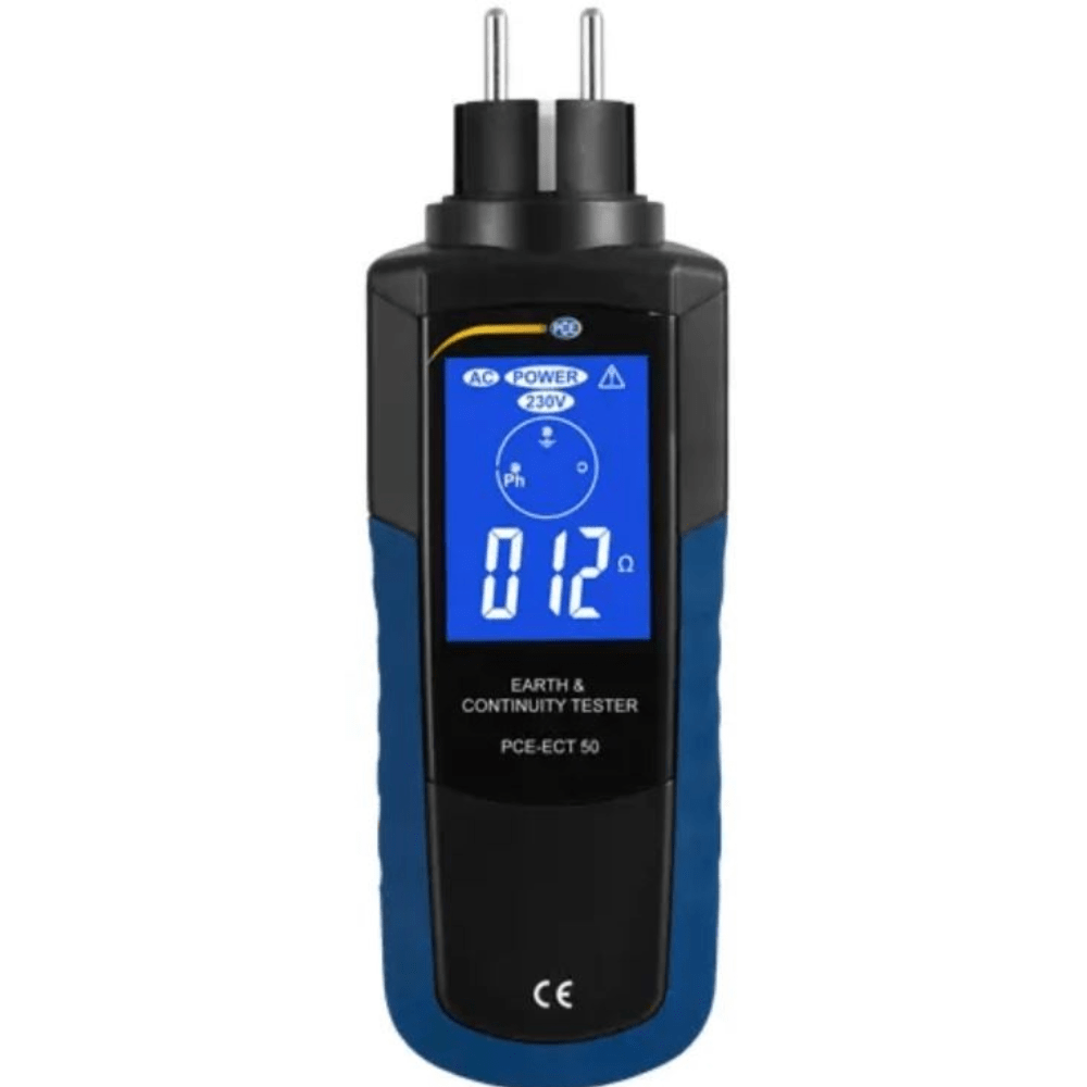 Afin de garantir une lecture correcte, l’appareil de mesure électrique Contrôleur de terre dispose d’un grand écran LCD multicolore facile à lire. L’état de l’installation s’affiche aussi sur l’écran. Si l’installation est en ordre, l’écran reste bleu. Dans le cas d’une installation défectueuse, le fond de l’écran de l’appareil de mesure électrique Contrôleur de terre deviendra rouge. L’appareil de mesure électrique Contrôleur de terre dispose d’une unité de lecture que vous pouvez brancher dans une prise, et une pointe de sécurité qui est connectée dans la partie inférieure de l’unité de lecture. La pointe de sécurité possède un câble d’une longueur de 7 m environ.